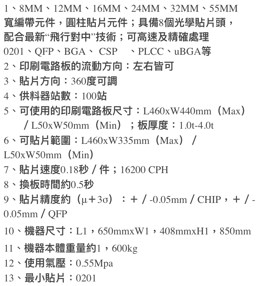 | 設備重量 / Weight | 1,370 kg(含 tray) |
