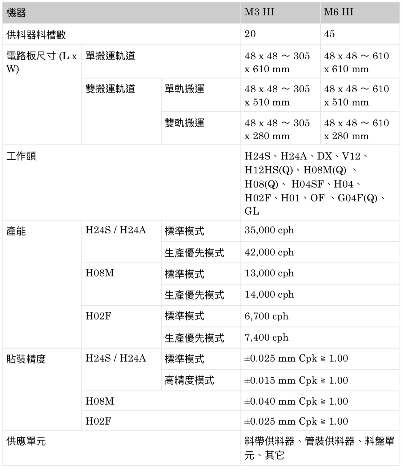 | 設備置件重複精度/ Repeatability |